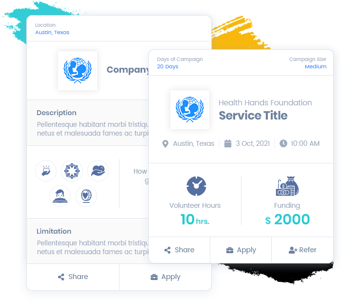 Curate a local feed by connecting with other volunteers through shared interests and passions. Organic exposure and outreach is reinforced through the display of all needs in one click. Share details amongst volunteers and donors in transparency.
